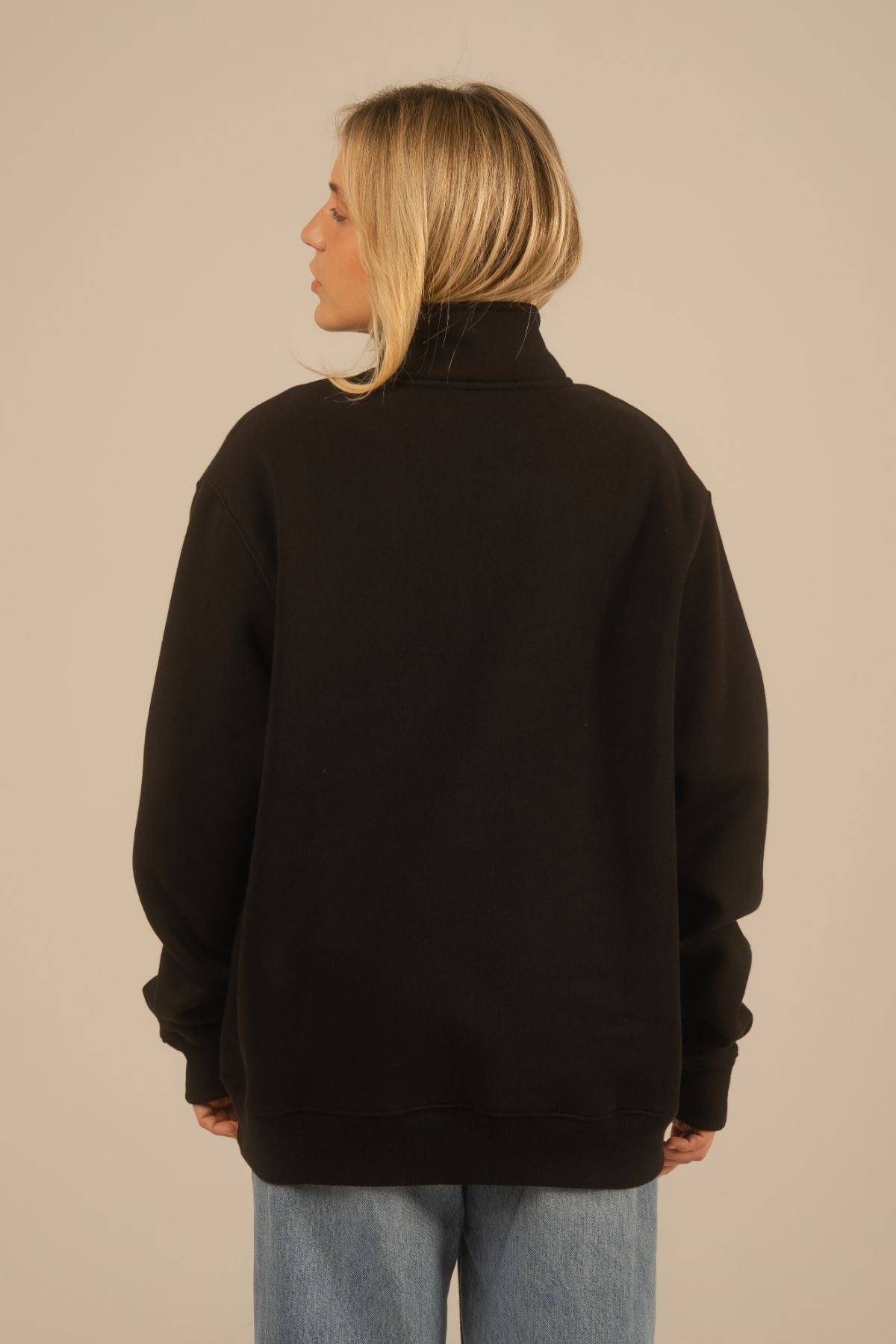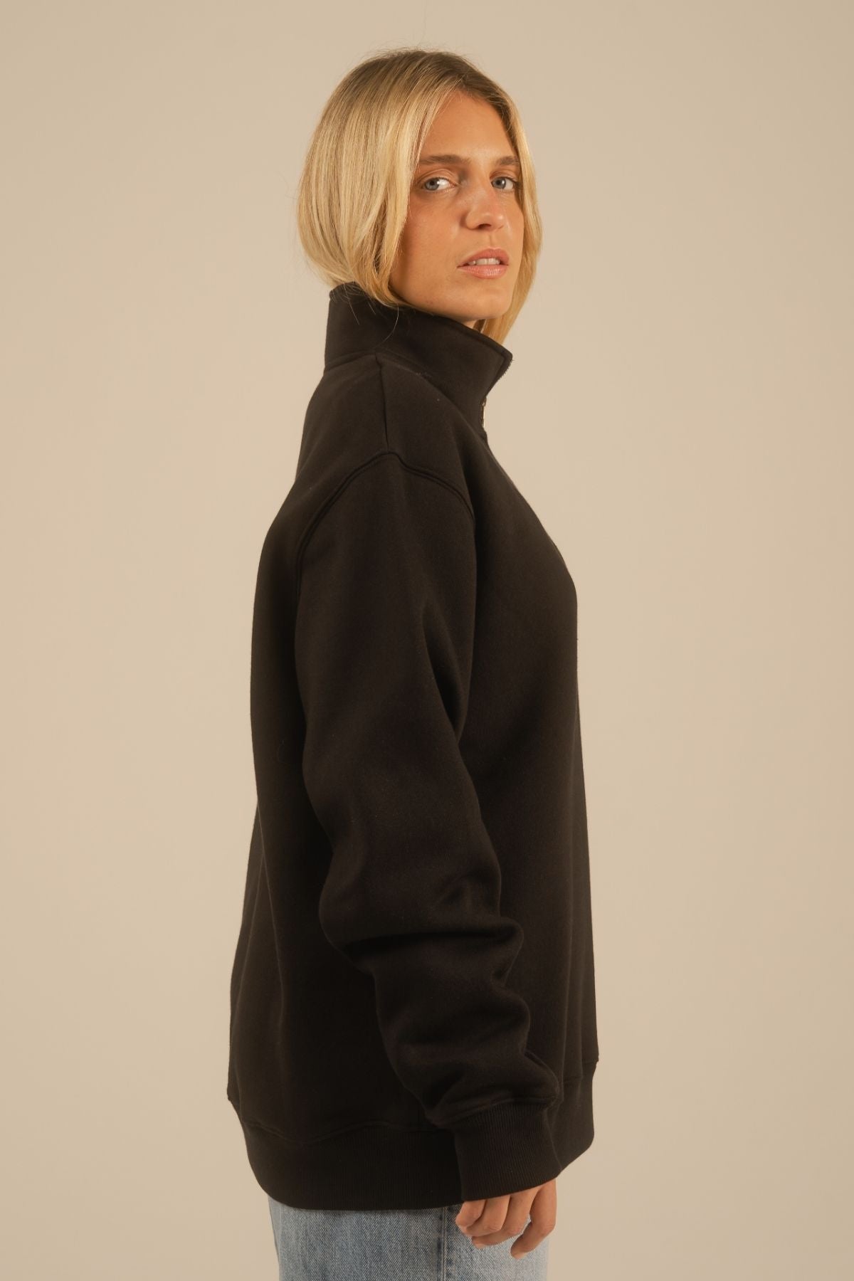 Quarter zip midweight en 40 % coton biologique, 25 % coton recyclé et 35 % polyester recyclé, coupe relaxed. Fabriqué au Portugal