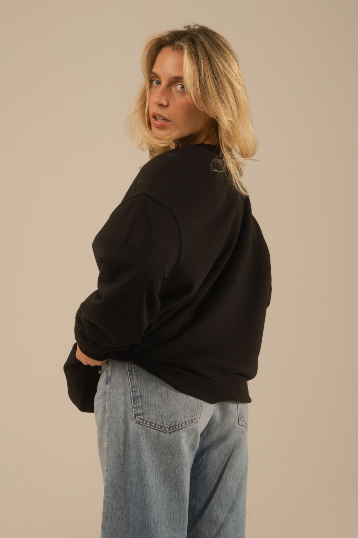 Sweatshirt midweight en 100 % coton biologique, coupe oversized. Fabriqué au Portugal